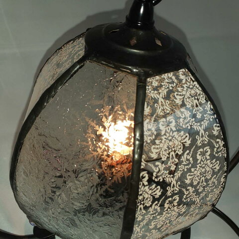 商品情報 素材 ガラス半田 サイズ 縦×横×高さ 16×24×24cmコードの長さ 170cm ご注意 ・アメリカやイタリアの輸入ガラスを使用しているため、同じガラスでも使用する箇所によって模様の出方が微妙に異なります・輸入ガラスの特性上、小さな気泡や傷が入っている場合があります・ひとつひとつ丁寧に製作しておりますが、ハンドメイドのため、サイズ 色 形などが多少異なる場合がございます・ガラス製品につき、お取り扱いには十分ご注意ください・モニターなどの環境により画像の色などが多少違って見えることもございます【送料無料】アンティーク調 ステンドグラスダマスク柄のテーブルランプフロアランプ インテリア雑貨 インテリアグッズ インテリア照明 インテリアライト インテリアランプ ベッドサイドライト 間接照明 ガラス ハンドメイド おしゃれ かわいい プレゼント 贈り物 柔らかな光に癒されますベッドサイド、玄関や階段下にもおすすめですライト オリジナル ステンドガラス 手作り 手づくり ガラス細工の作家さんが心を込めて一つ一つ手作りをしております ステンドグラス、フュージング 様々な手法で素敵な雰囲気を醸し出すダマスク柄のランプを作り上げました ガラスを電気炉でカーブさせて柔らかい表情に癒され 2種類のクリアガラスで全形は丸くて優しいイメージですコードの中頃にスイッチが付いておりますので 枕元に置いても便利です 暮らしの小箱で取り扱っているステンドグラスは作家によるオリジナル作品です 一点物につき、他サイトでご注文があった場合 品切れとなる場合がございます 3