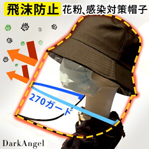 [関連ワード]感染 飛沫 花粉 対策 帽子 マスクと併用でしっかりウィルスや花粉ブロック防止 花粉対策 ウイルス対策 ハット キャップタイプ ウイルスシャットアウト ウイルス 花粉 ブロック バケットハット つば広 日よけ 掛け 春夏 【2WAYウイルスブロック帽子 】【春 新作】【2020年1月新作】DarkAngel/ダークエンジェル